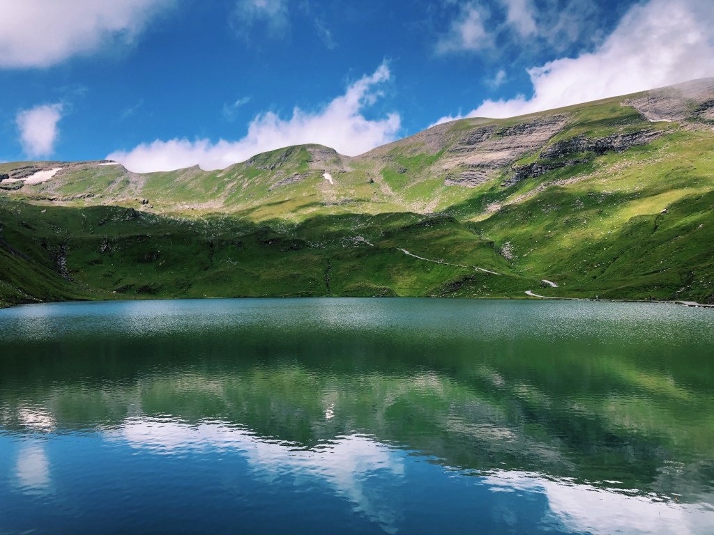 A short hike from the top of Grindelwald’s First mountain will lead you to another add to our list of most beautiful lakes in Switzerland. A beautiful mountain lake! Plenty of space around to find your own quiet picnic spot around the lake to soak up some views and try to catch a perfect photo of a reflection in this beautiful Swiss mountain lake! After the hike, the Grindelwald first mountain offers you some fun alternatives to get back down again, like by Trottibike, mountain kart, or zip lines.