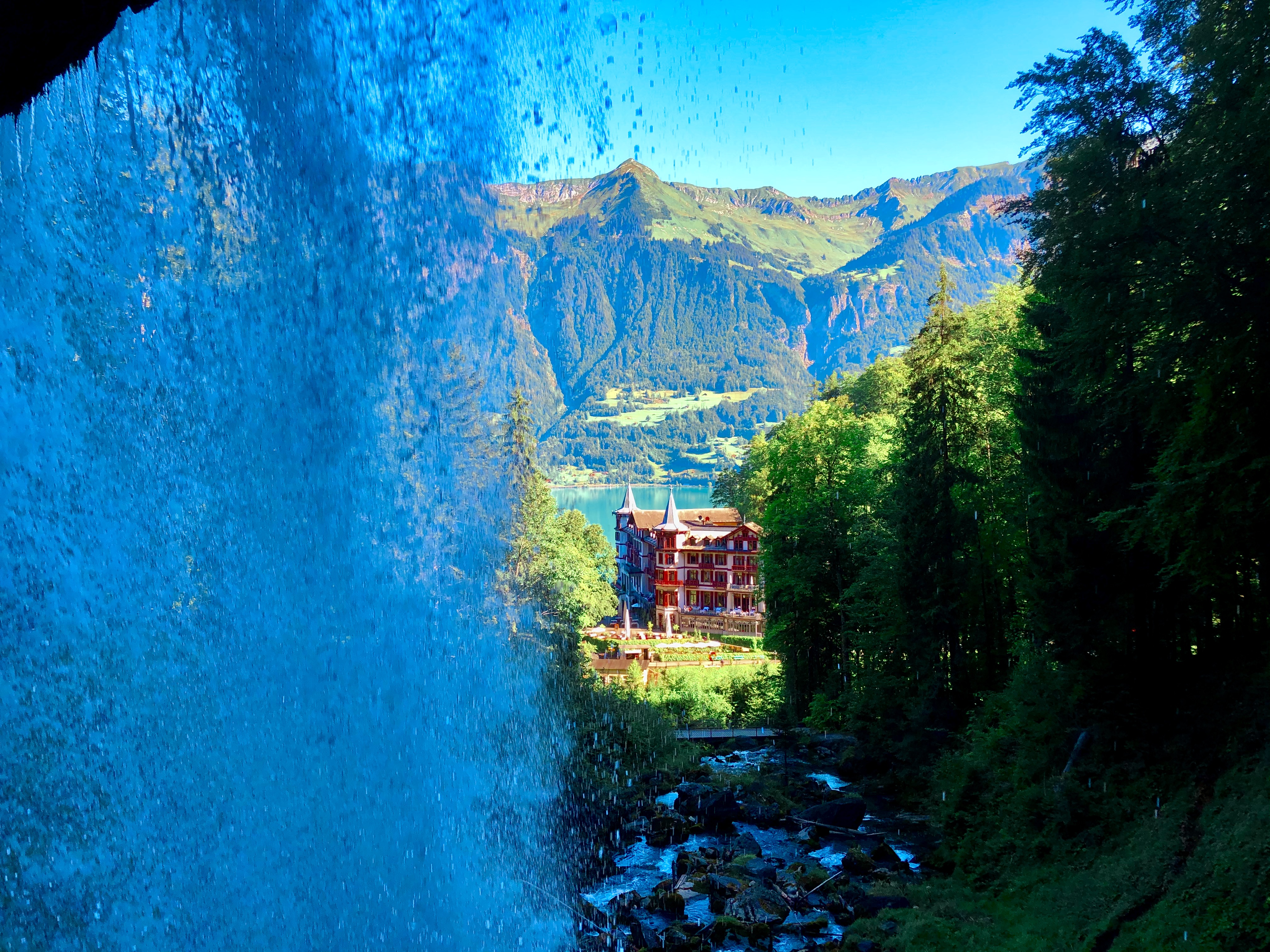 A great starting point to explore the area is Giessbach Falls. After a short hike that allows you to actually walk round the back of the fall, admire the fairytale-like castle / hotel. Better yet, enjoy a cup of coffee on the terrace overlooking the lake and the mountains. Board the historical funicular that is taking you through woods, over bridges and alongside waterfalls down to the lake Brienz.