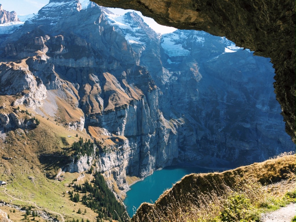 Oeschinensee is for sure one of the most beautiful lakes in Switzerland. Where it was still a hidden gem a few years ago, its beauty as seen from the Panorama hike is now starting to get a certain fame! In winter the lake is one of the most scenic lakes for ice-skating. In summer it is a beautiful place for hiking, or for grilling and chilling on the lake side. We loved the Panorama hike around the lake, even though the path is sometimes narrow and steep. The views from this hike are views we will never forget! You can access this beautiful mountain lake by the cable car from Kandersteg.