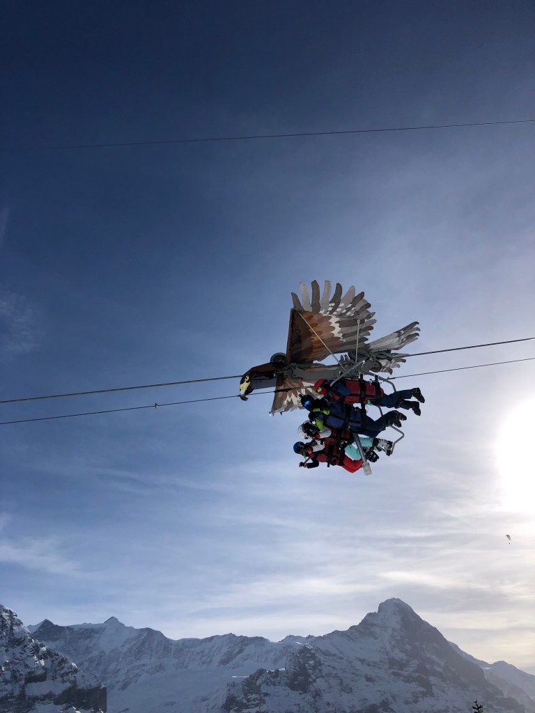 Grindelwald also has a lot to offer for non-skiers, or for those who just don’t want to ski all day. We think this is important when choosing a ski resort since like most families, we don’t always all have the same interests, and it is great to have some alternatives. Grindelwald has winter hiking paths, sledging slopes, snowshoeing paths and some adrenaline activities like the First Glider which has you fly over that gorgeous landscape like an eagle.