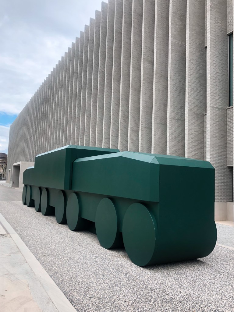 Plateforme10 is a modern new art district, very close to the train station, and located where the former train halls were. The fact that it is located at a former train hall, is nicely integrated on the esplanade in front of the building. The art district is more than a museum hub. It will also be a place to meet friends as there will be restaurants, and we already saw some shops. At the moment the Musée Cantonal des Beaux-Arts is already located at Plateforme10, and two more museums will follow soon: MUDAC (Museum of Contemporary Design and Applied Arts) and Musée de l’Elysée (photography).