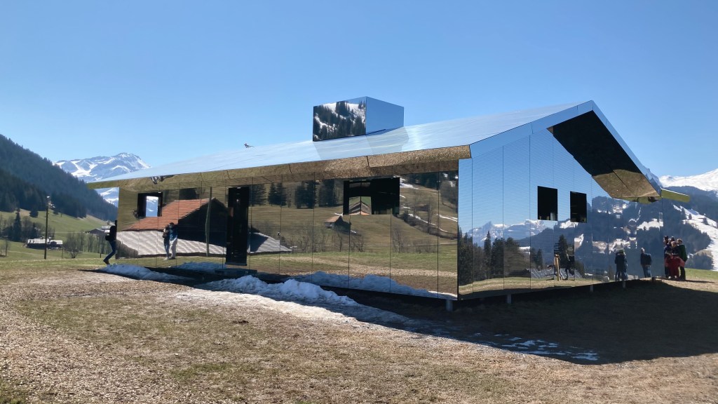 From Chateau d’Oex we visited a bit of the surrounding villages, while doing an Easter egg hunt, and we went to Gstaad to finally see the Mirage mirror house, just before it was taken away. We were happy we went to see it as I wanted to go for a while, but somehow never got around to do it.
