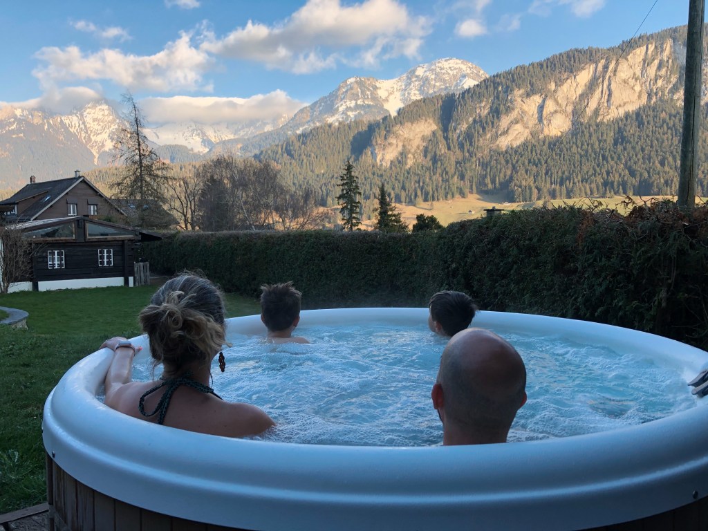 Life sometimes goes as it goes, and we had a super nice surprise as on Friday just before Easter, we actually won a giveaway to go to lovely BNB Le Vieux Chalet in Chateau d’Oex! We were all super excited and left the next day for a 2-nights stay. The BNB was wonderful with lots of things to do for the kids, so they played basketball, table soccer, table tennis, and we could all use the outdoor jacuzzi with a mountain view! A real treat!!