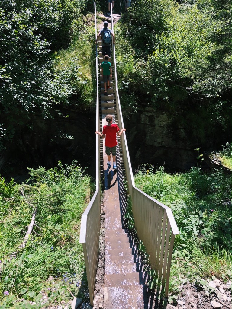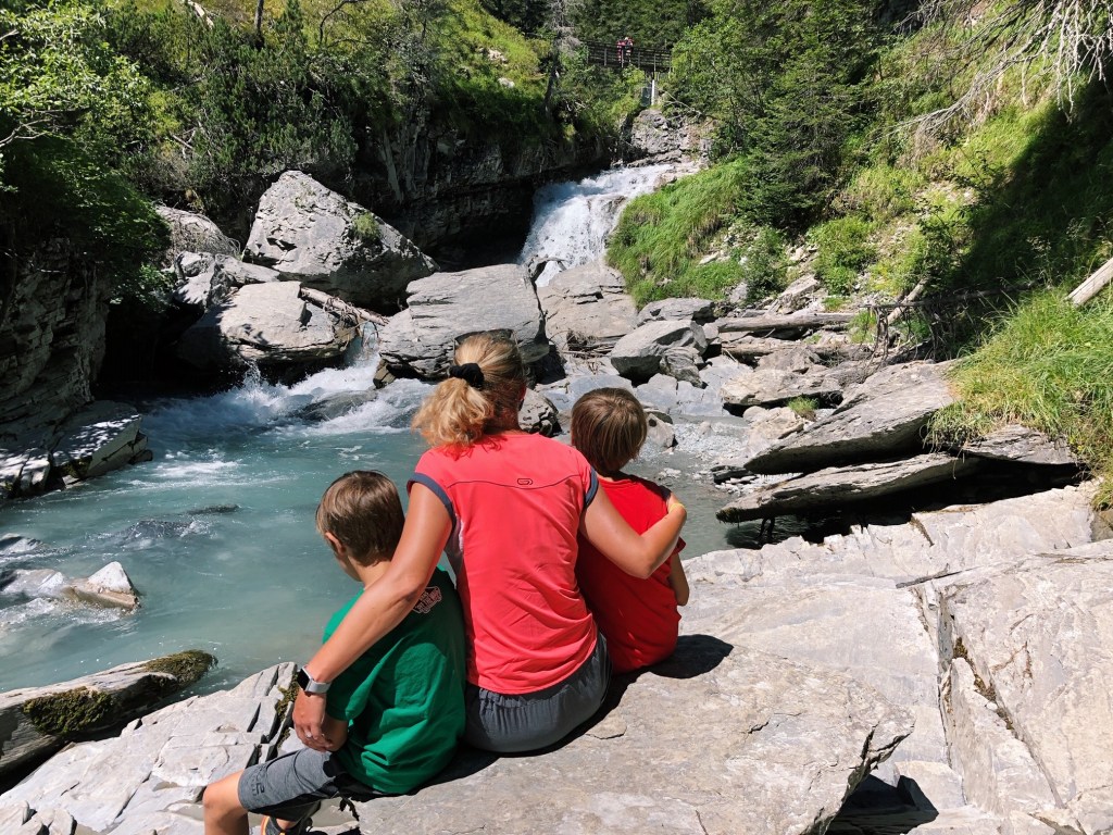 A part from a visit to the village, you can head up the mountains. There are 2 gondolas in Grimentz. A big one which you could use to start a hike towards Lac de Moiry, and a smaller gondola, which takes you up to Bendolla. Up on Bendolla, there are more fun activities for younger kids, but you could also just hike and enjoy a picnic with a view! We hiked towards the waterfall and our kids loved crossing the water while jumping on stones.