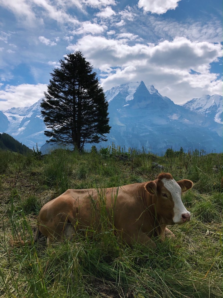 There are plenty of hikes to do on Männlichen. The Royal Walk to the viewpoint, the Lieselotte educational cow trail for kids towards the Holenstein intermediate station (a hike of about 1h30), and the Panorama Hike, which is the one we did. The Panorama hike leads you in the direction of Kleine Scheidegg, and is a mainly flat hike which is very accessible for families. It is also a popular hike, so if you go on a weekend, you may find it a bit crowded. The hike is absolutely breathtaking though. We hiked back and forth for about 2 hours, but we stopped in the middle and found ourselves a spot in the surrounding green meadows to enjoy a cheese fondue with a view!