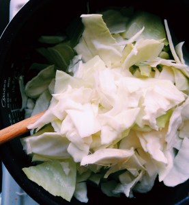 - After about 15 minutes you can taste the cabbage to see if you like the way it is cooked. Rahel likes it when it is still a bit crispy, but others prefer when it is very soft.