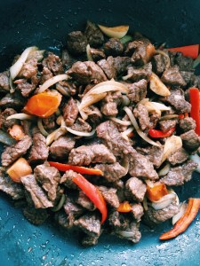 Tibs can either be made with sauce, or without. Since we already have 2 different sauces, we will prepare the meat without a sauce.