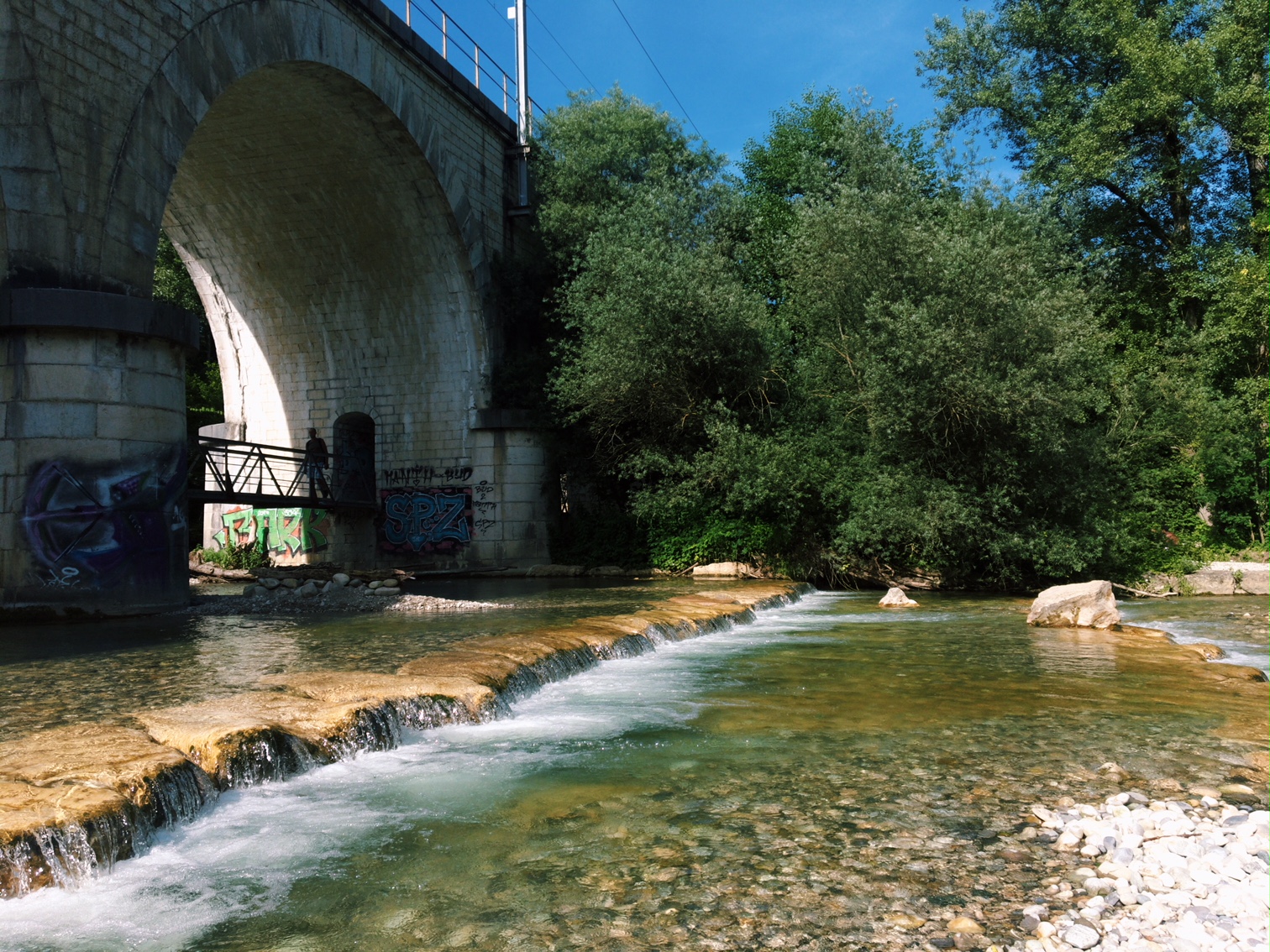 Very close to Geneva! This nature reserve, Réserve naturelle des Teppes de Verbois, along the Rhone river is not so much known. It is not a mountain hike, but still a beautiful walk. It has little wooden observation houses to see birds. I always find it amazing to see what’s on the other side. Calm waters, vineyards and the view on the Jura mountains. It seems like a paradise for birds to come to this peaceful place! This walk is mainly in the shade, so very good on hot days! If you continue you will cross the Allondon river by walking over a bridge under the train tracks. This is a good place to refresh your feet in the (usually cold) water, or to have a picnic. On real hot days families install themselves here for a BBQ, and kids wade in the water and adventure around.