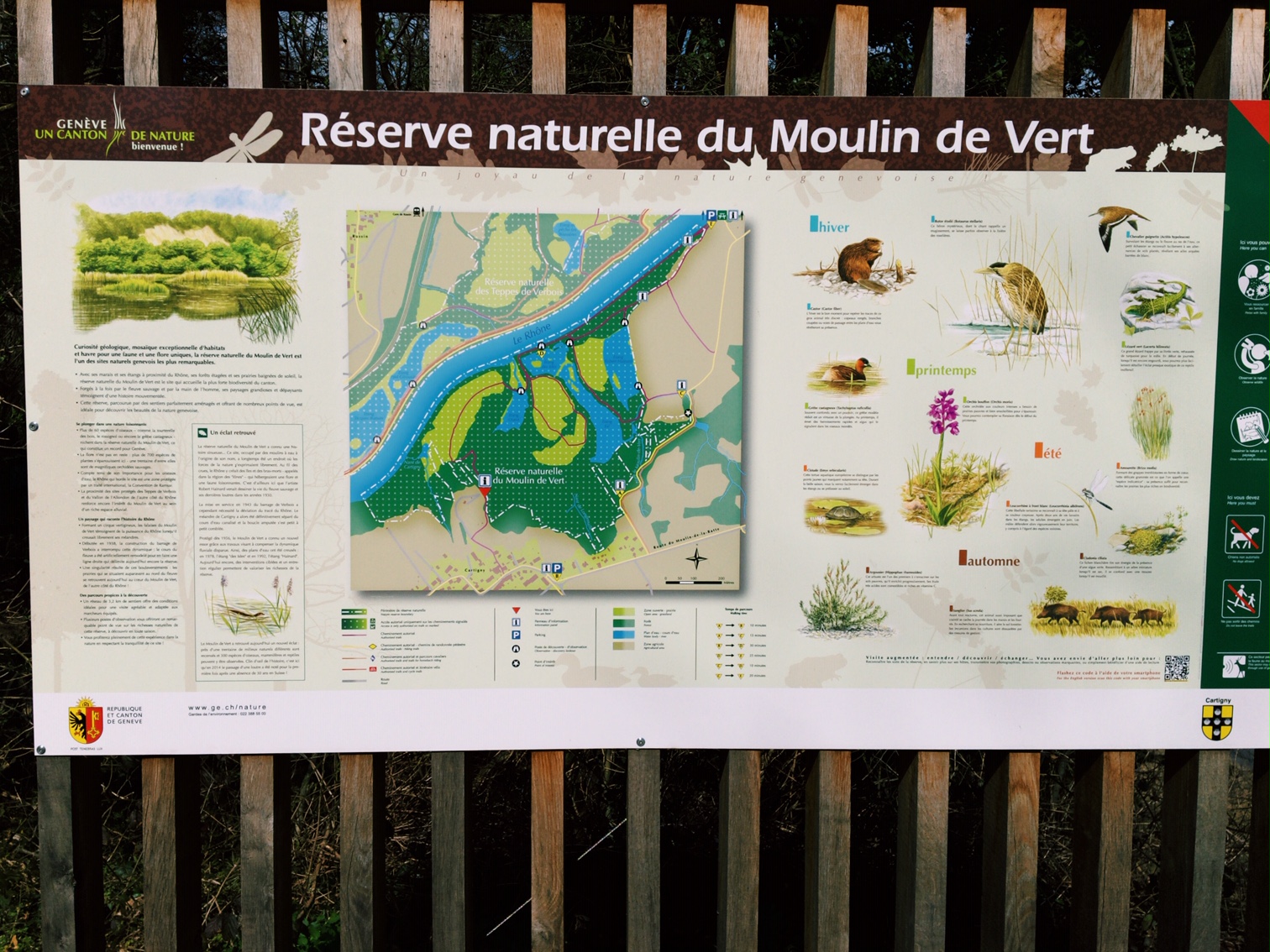 Located on the other side of the Rhone river, exactly opposite the Teppes de Verbois reserve. The nature reserve called Moulin-de-vert is also a nice place for a family hike in nature in the Geneva countryside.