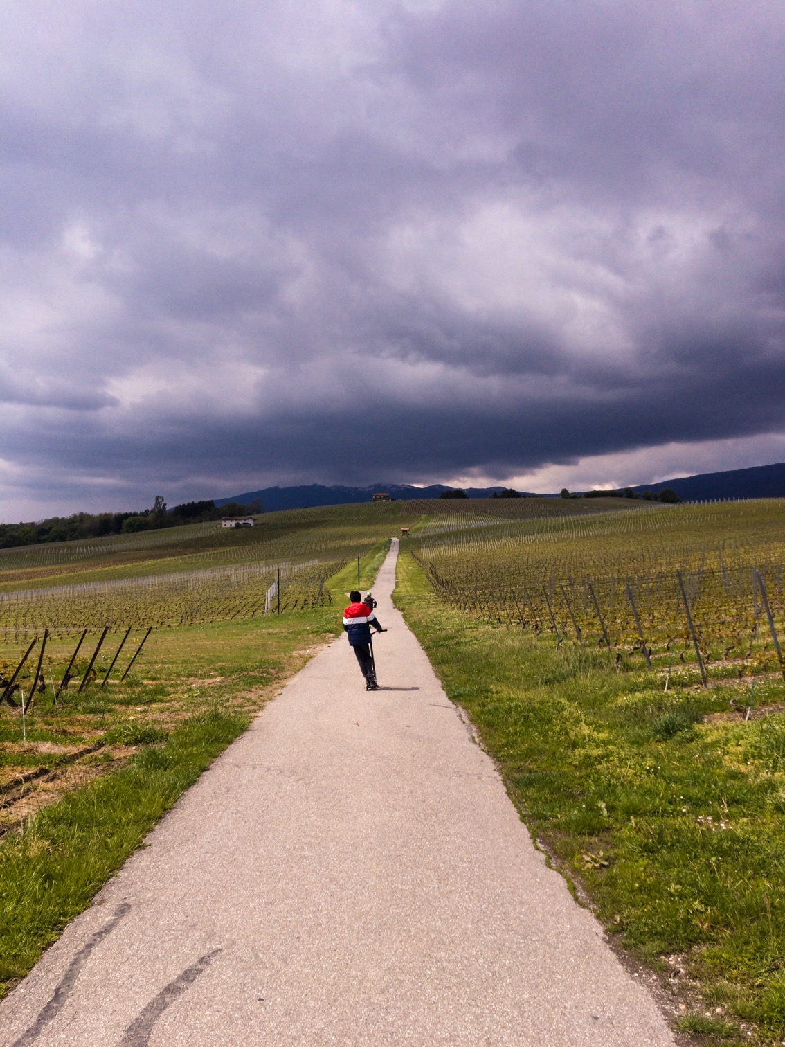 We love walking in Geneva’s vineyards! Satigny, Dardagny and Russin have a lot of walking paths or quiet roads. Your children can choose to walk, or bring their scooter. We have already described an area in Satigny in our Autumn hikes article, but the Geneva vineyards are good to go to any season. We recently went for a walk in the small town Dardagny, and have discovered such a beautiful hidden gem! A little café / restaurant called La Cabuche, in the middle of the vineyards! At La Cabuche you can order a local ham and cheese platter, slices of bread with jam or locally known ‘Cenovis’, home made ice-tea and local wines. You can warm up inside on cold days, or enjoy the terrace on sunny days. La Cabuche is not accessible by car, you have to walk uphil to get there. This is cool because not only will you get to enjoy the beautiful vineyards, but also, your children can roam around without danger. When it is colder, they do have games on the first floor for kids, but the stairs are steep, so if your children are small, make sure to accompany them.