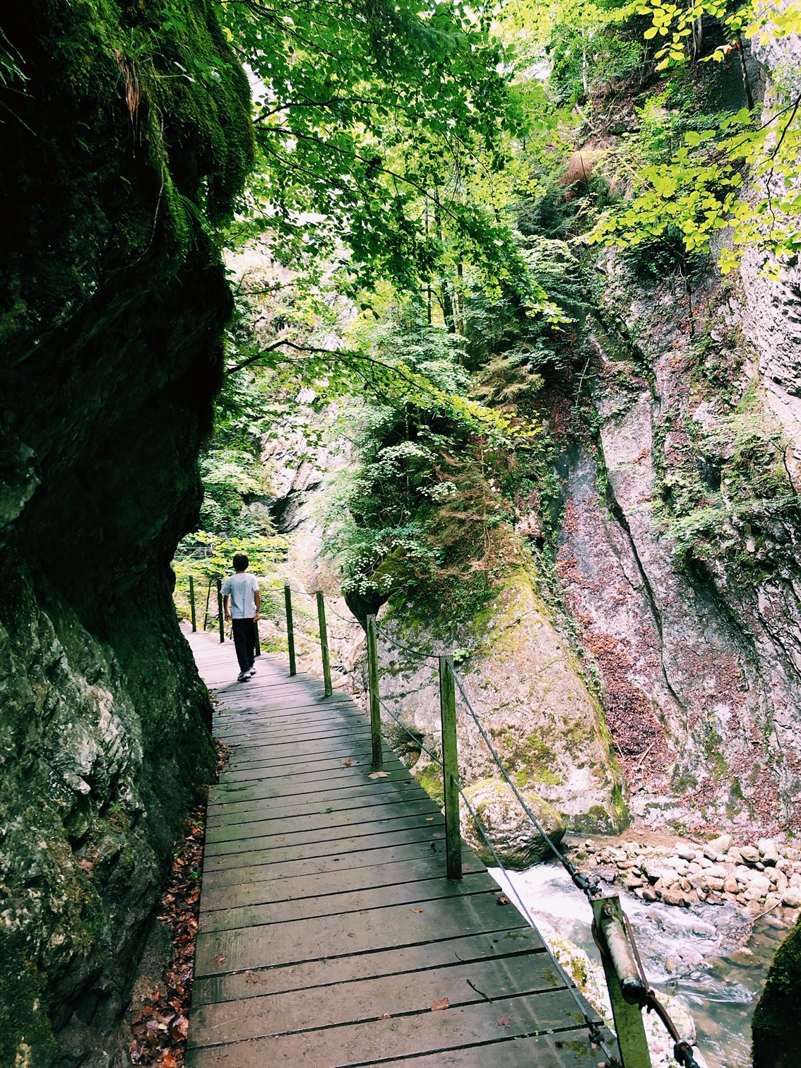 Close to Gruyères as well is the beautiful and easy hike of Gorges de la Jogne. This hike is not too long, and accessible and fun with kids as well as they will love the fact that this hike takes you through adventurous tunnels and over bridges! One tunnel was a bit longer and they liked that we even had to put on the flashlight of our phones to get through.