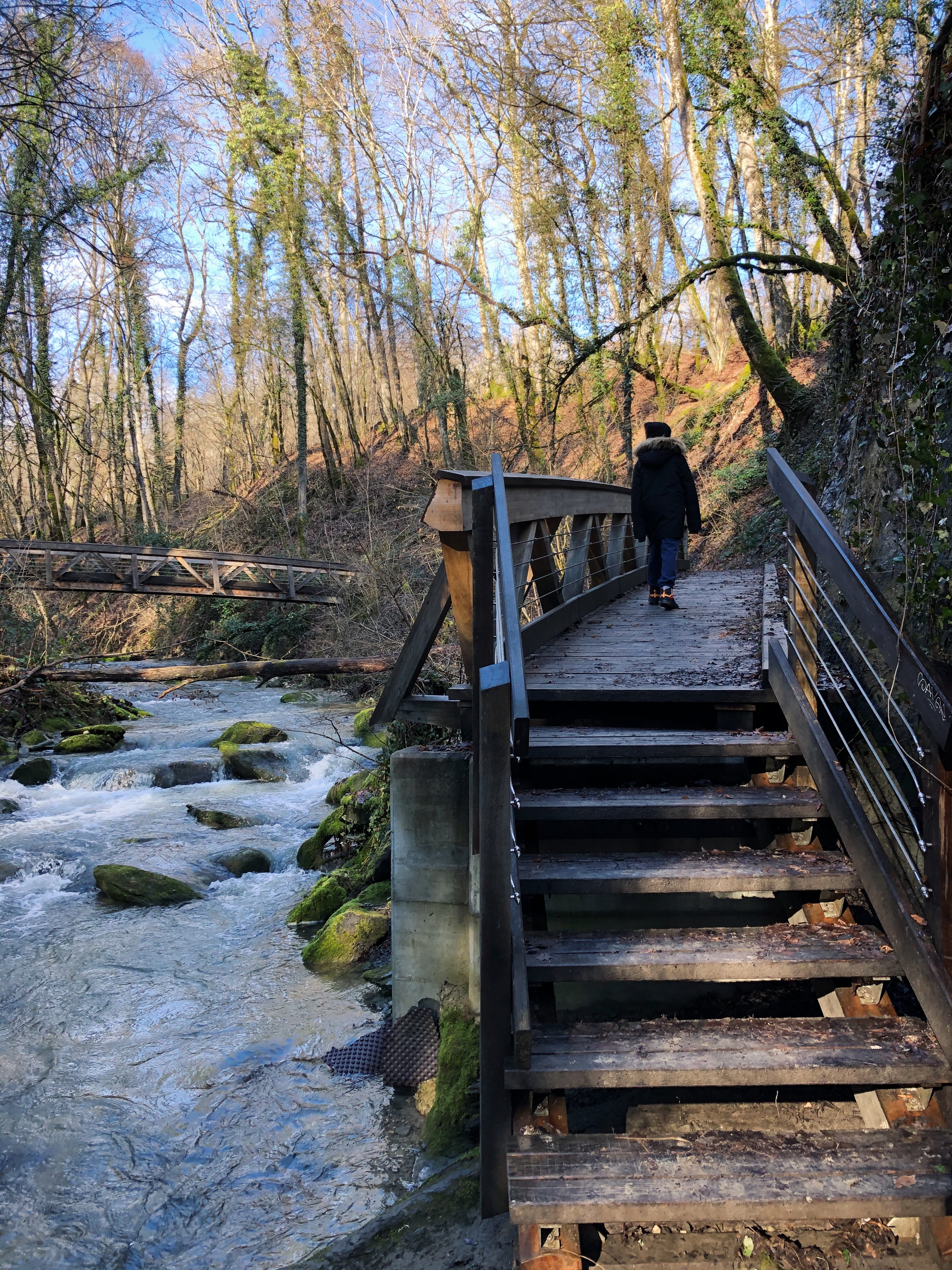From the parking lot, this family friendly (but not stroller accessible) hike, first takes you through the forest, along the Roulave river, and to a viewing point where you will be able to see the first 3 caves. Educational signs along the way about the caves, the plants that grow here, and the history of the site. Further along the way you will get to nice maintained wooden bridges, alongside 2 more caves. Once you get out of the forest, you will find yourself at the bus stop called Roulave and you then take a left, and head back to the parking lot by a nice stroll through the vineyards with a view on Geneva and the Alps.