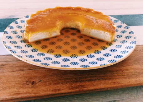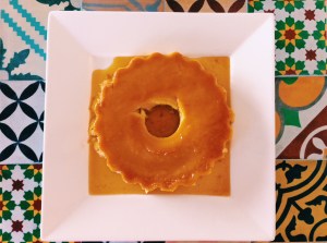 - Once it is finished, you let it cool off a bit, until luke warm temperature, you put a plate on it and turn it around. If it doesn’t come out immediately (which was my case) you can gently hit a bit on the top and the sides of the mold. I guess the better the caramel was distributed, the easier it comes out.
