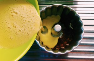 - Pour the caramel into your mold, on the bottom, but also try to put some on the sides by turning your mold around (careful, depending on the mold you use, it could be hot). By putting some caramel on the sides, it will make it easier later on to get the flan out of the mold.