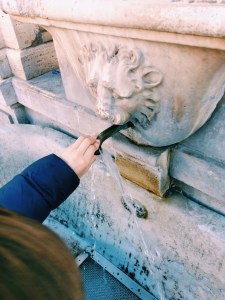 Speaking of fountains… Rome has a lot of drinking fountains called Nasoni (big nose). The Romans actually use these fountains by blocking them with their hand, so that the water will come out through a small hole on top of the sprout, which makes it easier to drink. Once our children knew about this, they had to try about every Nasone they spotted.