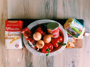 - When the bell peppers and onions have become nice and soft, you can take them off the heat and, with the use of a strainer, you take off the olive oil you fried them in.