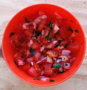 - Your freshly made Pico de Gallo salsa, or chopped tomatoes