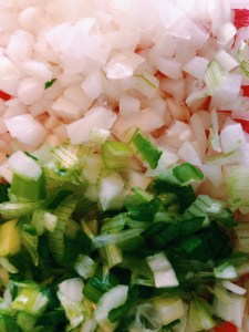 - Cut the mint and the parsley (with kitchen scissors is the easiest) and scrape the onions with a scraper (easier to roll later on).